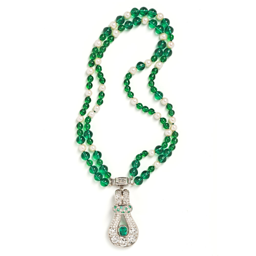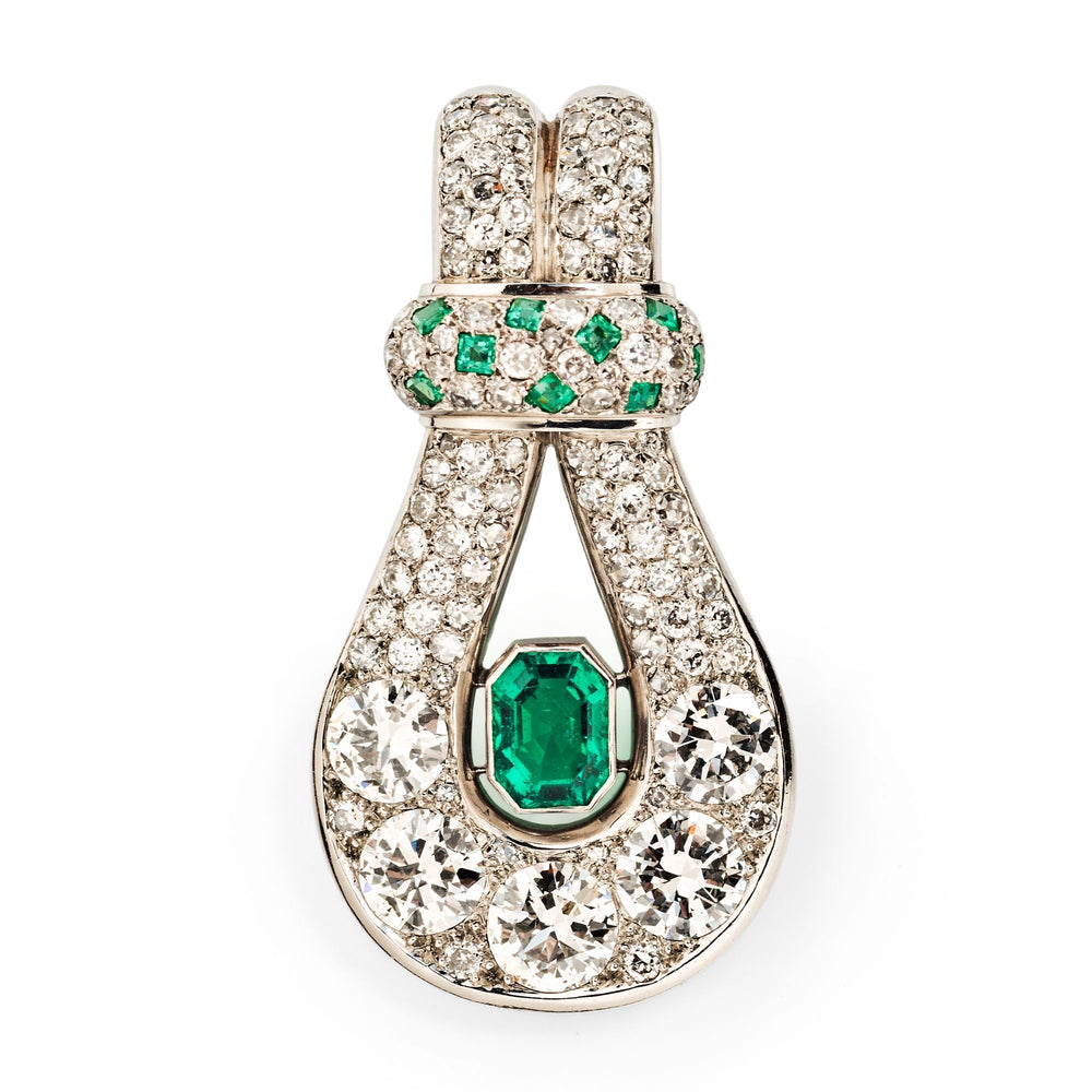 Suzanne Belperron Convertible Platinum, Emerald and Diamond Pendant Necklace