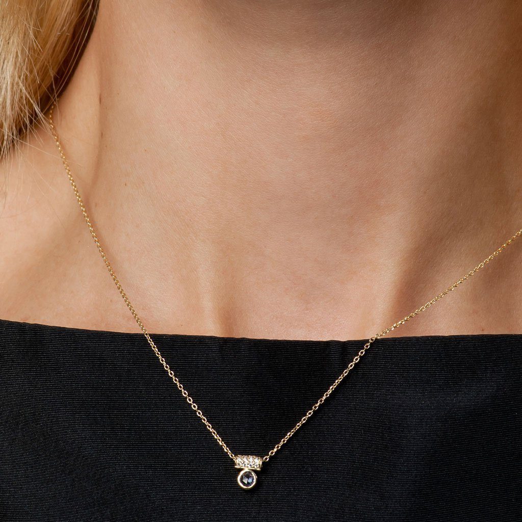 Blue Sapphire & Diamond Tube Necklace