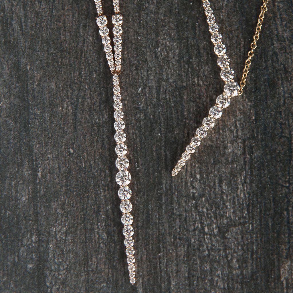 The Stiletto necklace is simple in design, but rich in detail. A modified lariat form with diamonds of graduating then tapering sizes that add dimension.