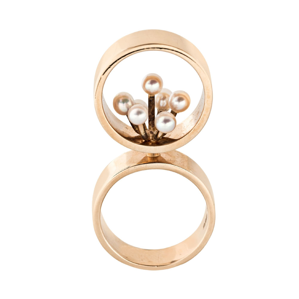Hans Hansen 14k Yellow Gold and Cultured Pearl Ring