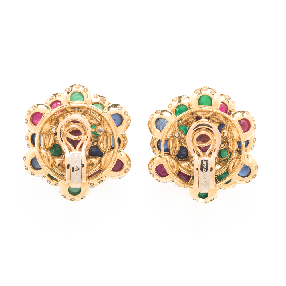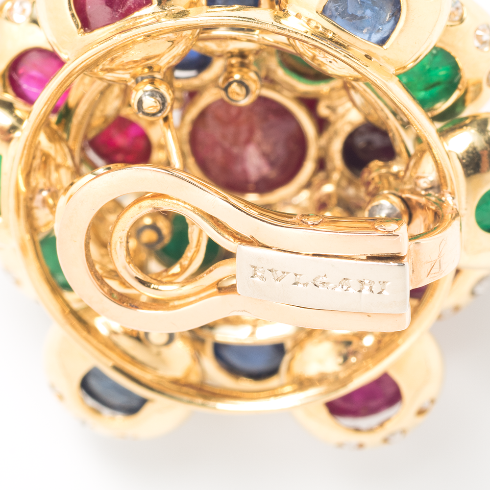 Bulgari Ruby, Sapphire, Emerald and Diamond Ear Clips