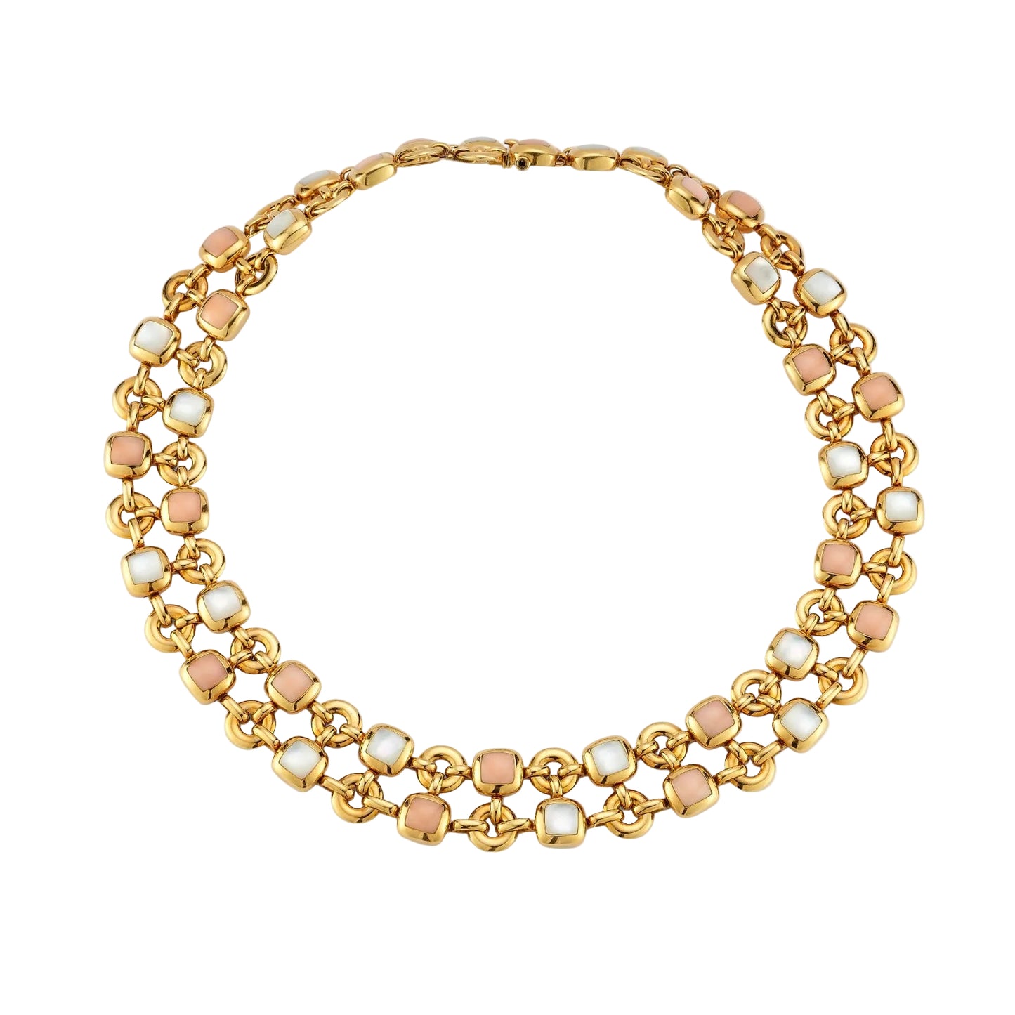Van Cleef & Arpels Double-Strand Angel Skin Coral, Mother-of Pearl and 18k Gold Necklace Circa 1958-1963