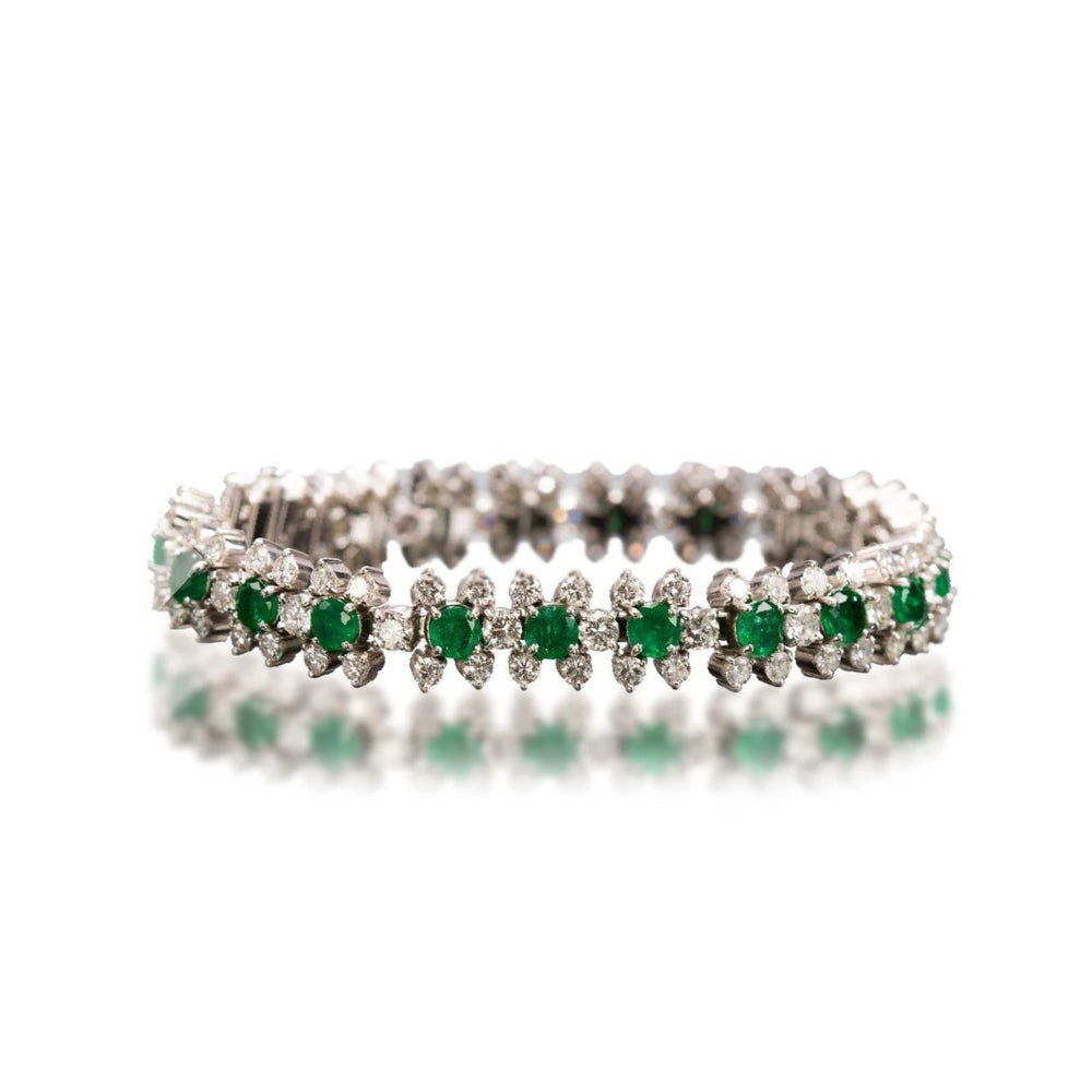 Emerald and Diamond Flower-Head Bracelet