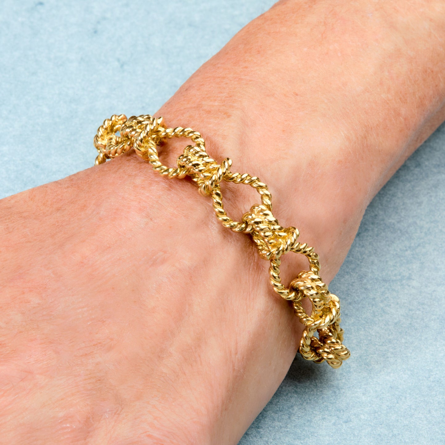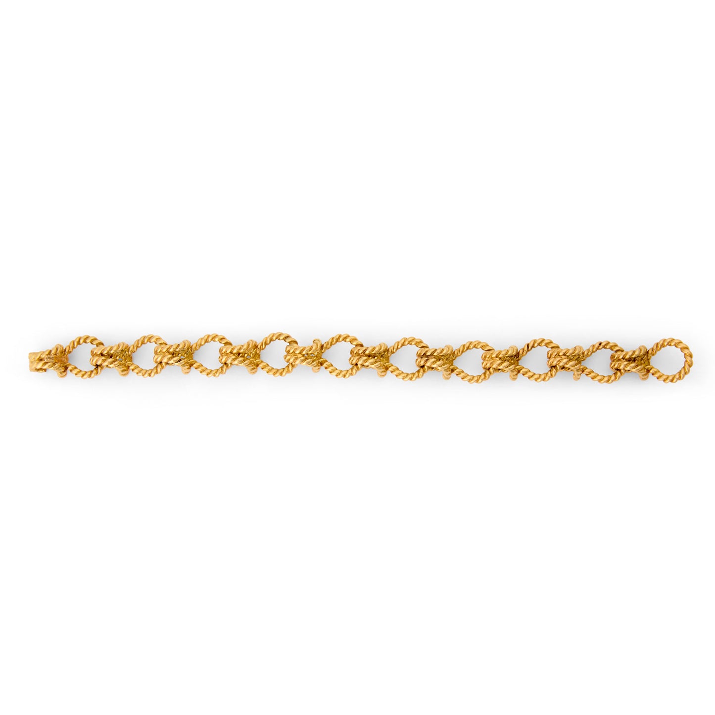 This particular version of Verdura’s rope bracelet captures the moment of twist itself, each link seeming to rotate within the next, creating a supple, almost kinetic continuity. Our bracelet leaves behind the uniform links of other designs and highlights the links shifting under subtle tension recalling the organic irregularity of rope under strain.