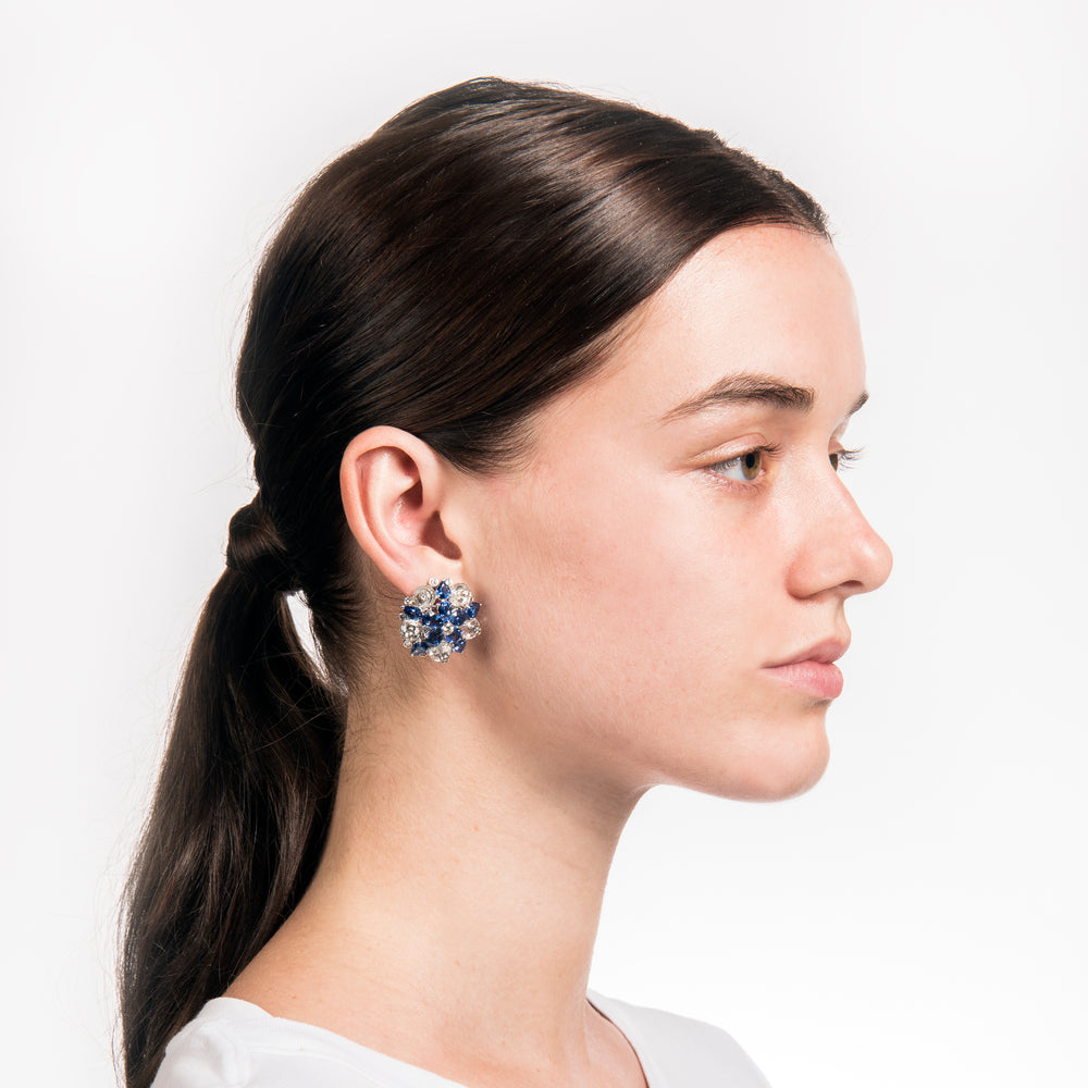 Aletto Brothers One-of-a-Kind Sapphire, Diamond And Rock Crystal Flower Ear Clips