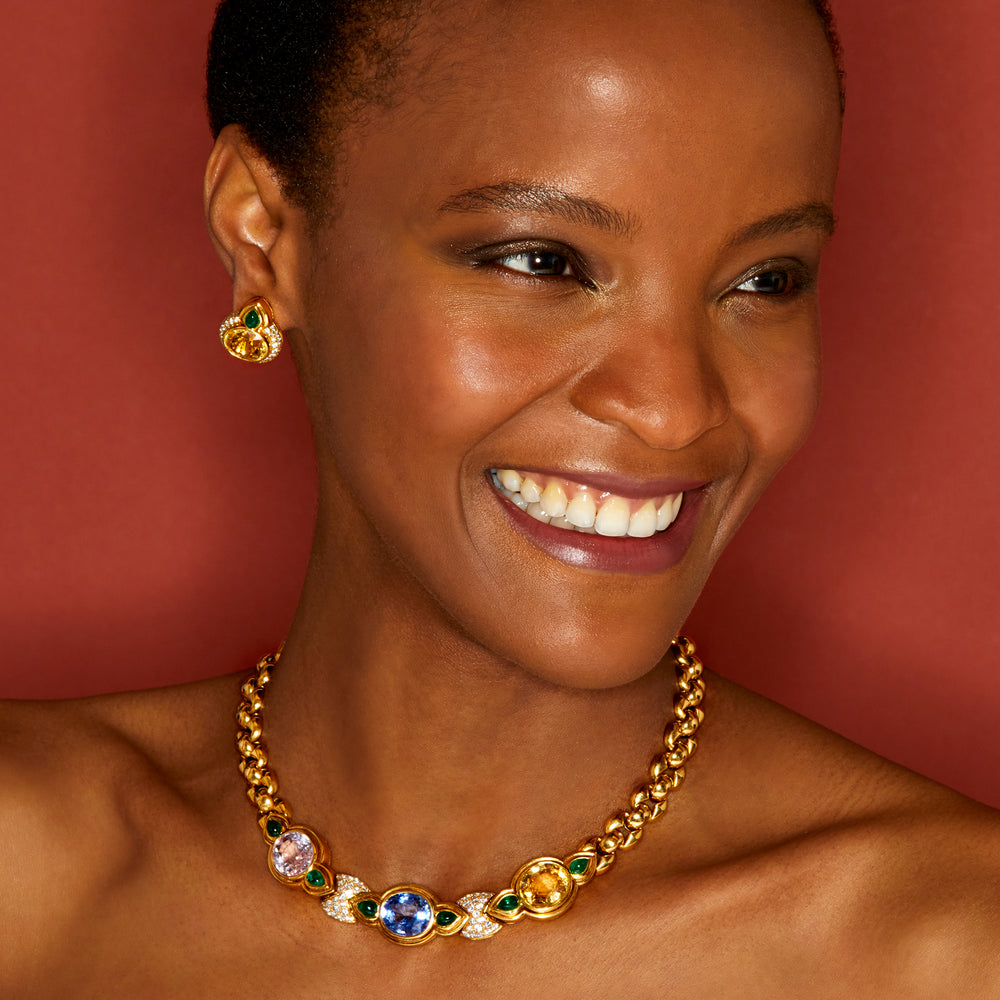 Bulgari Multicolored Sapphire, Emerald and Diamond Necklace and Ear Clips