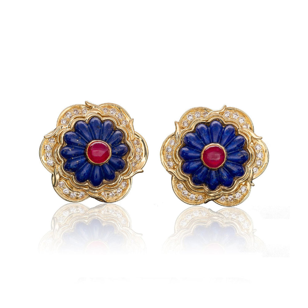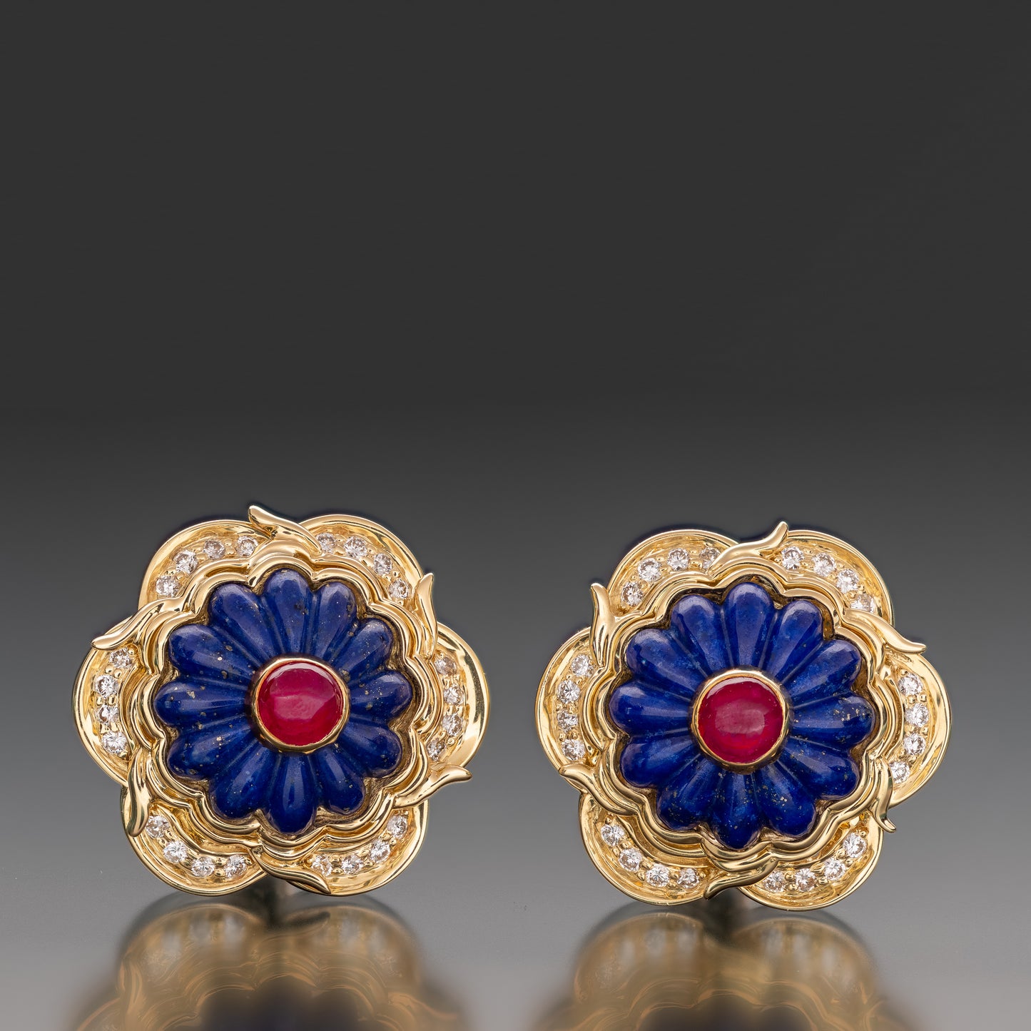 Harry Winston Lapis, Ruby and Diamond Earrings