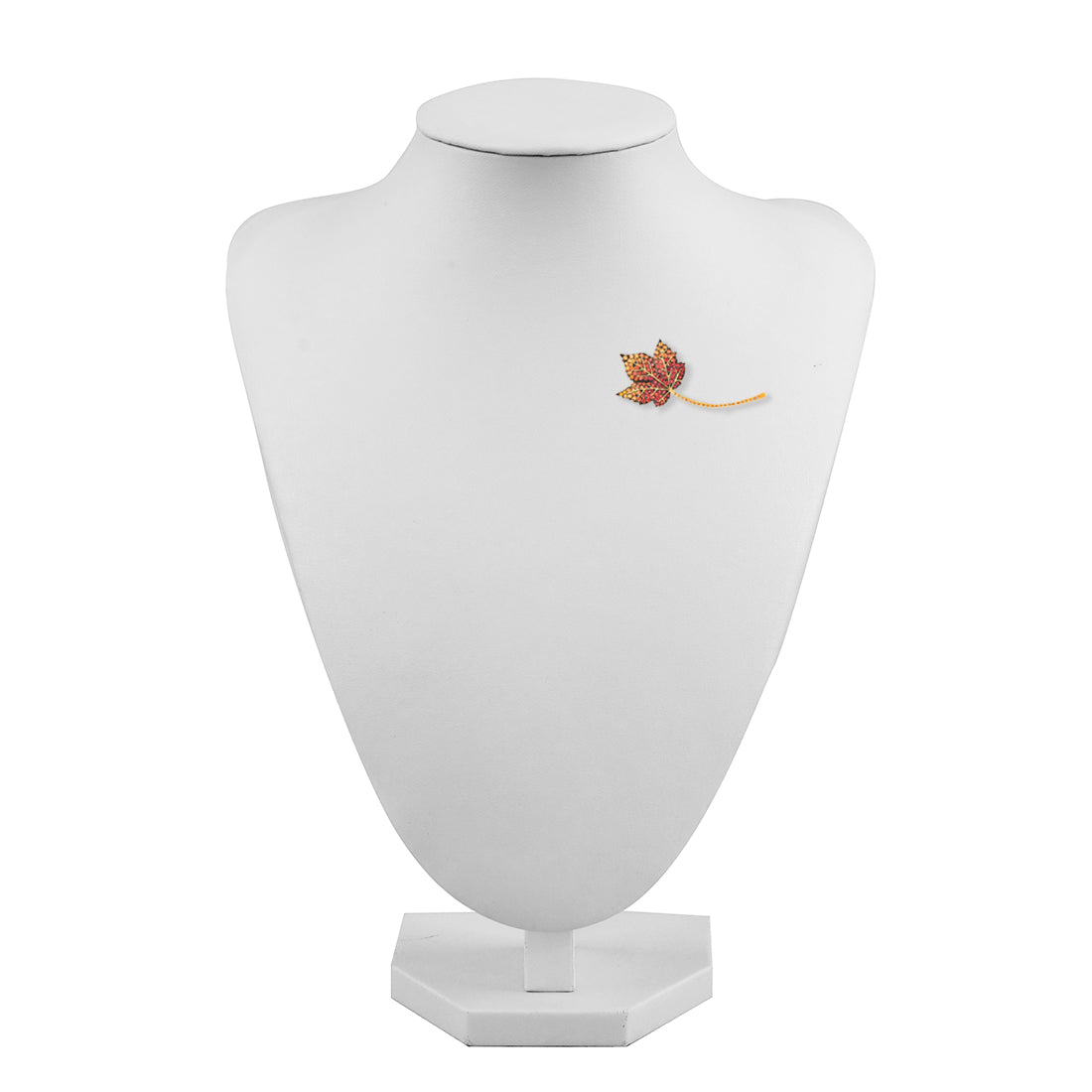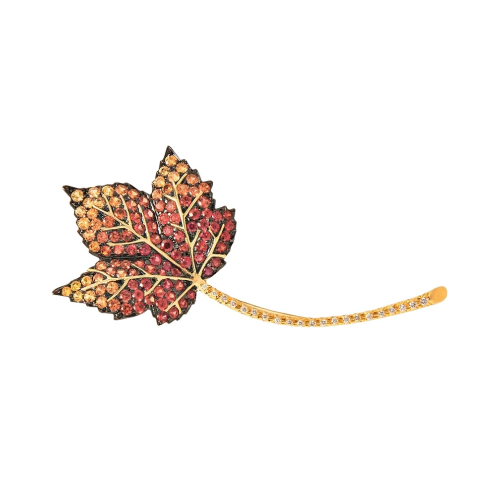 Multicolored sapphires in autumn shades of yellow, orange and red highlight this naturalistic leaf form brooch. Vibrant round brilliant diamonds trace the elegant line of the stem.