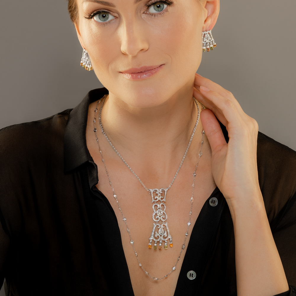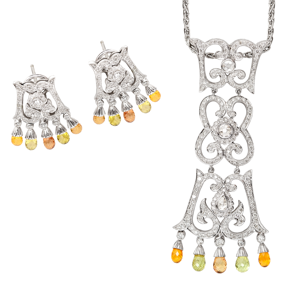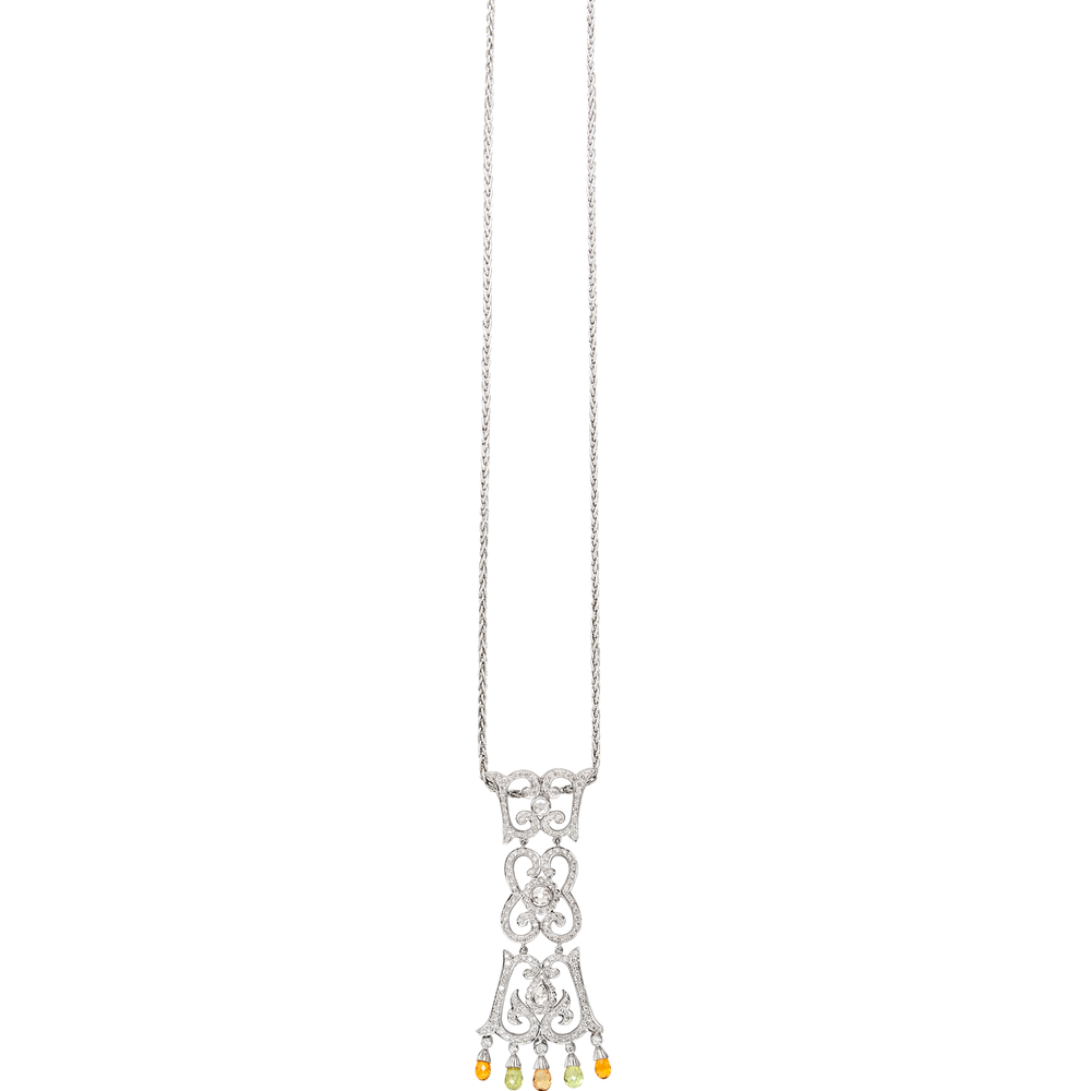 Pendant Necklace with Colored Briolette-Cut Sapphires and Diamonds
