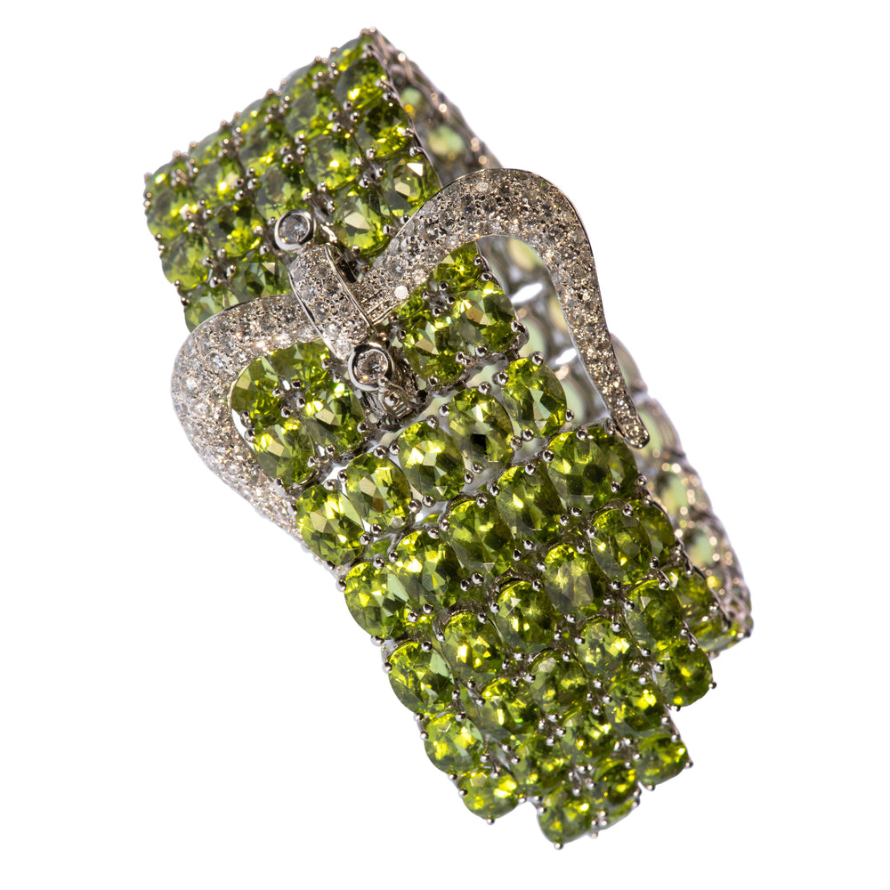 Peridot, Diamond and 18k Gold Buckle Bracelet