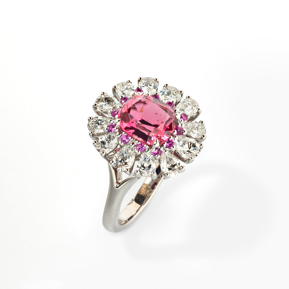 Pink Spinel, Pink Sapphire and Diamond Ring